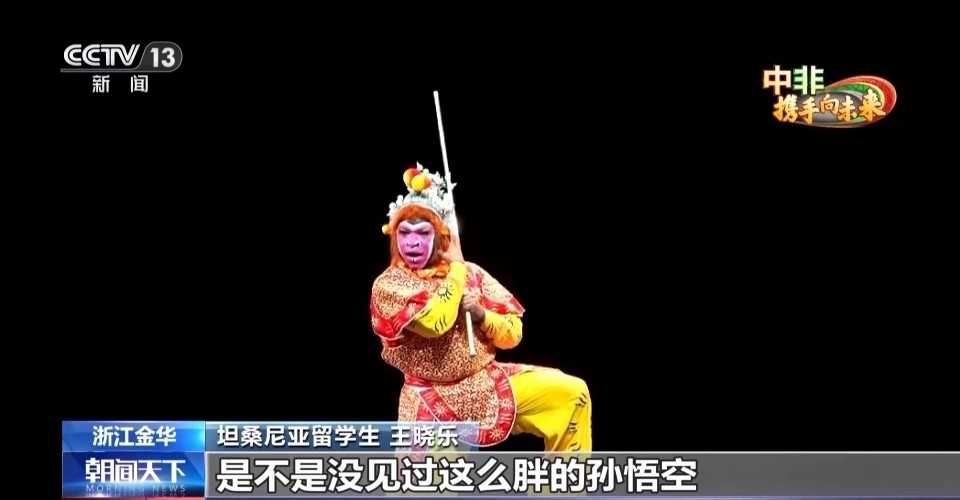 大学期间,我在孔子学院学习了汉语,这为我打开了一个新的世界。我还是坦桑尼亚第一个学会舞龙舞狮的大学生。六年前,我来到中国学习汉语国际教育,这里的老师和同学都很友善。我还学习了戏剧戏曲,你看,这是我参加婺剧表演的照片,是不是没见过这么胖的孙悟空。