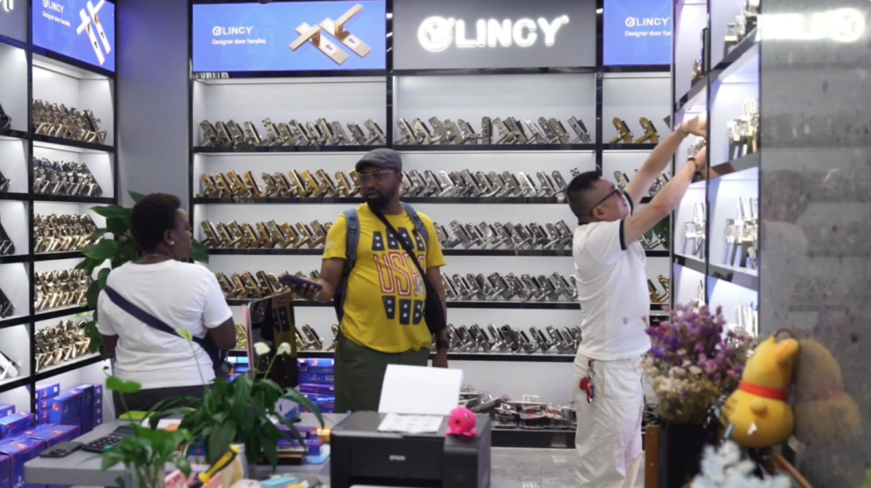 在义乌国际商贸城二区市场,经营户林小明正向坦桑尼亚采购商阿里介绍锁具。阿里对极具性价比的智能锁十分中意,当场决定下单。“我们一年要出至少10个柜子的货,一直在找质量好又便宜的商品,他们家的产品就很符合,我也希望和他达成更多合作。”