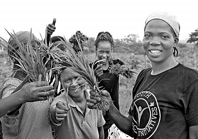 当地员工在尼日利亚阿布贾的中国援尼日利亚农业技术示范中心展示秧苗。新华社发