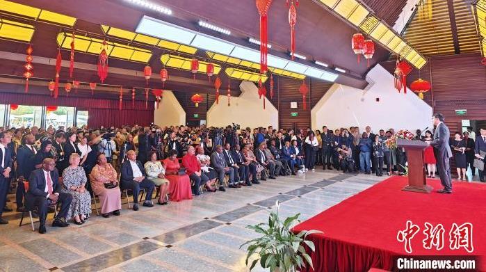 中国驻南非大使吴鹏、南非人居部长库巴伊在招待会上分别致辞。南总统府妇女、青年及残障部长奇昆加,非国大总司库拉莫豪帕等党、政、军警高层和工商、智库、高校、媒体等各界人士以及在南中资机构和华侨华人代表600余人出席。