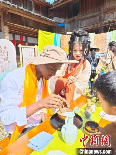 欢呼声同样在蹴鞠项目中传来,来自埃塞俄比亚、加纳、喀麦隆等非洲国家的同学围成一圈,花式炫技玩起了颠球和传球,引起游客和村民的围观。