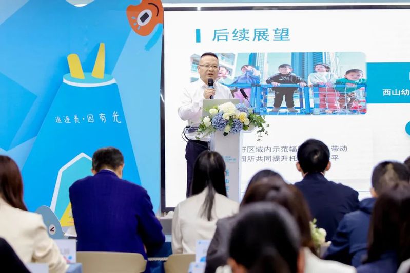 赵狄宏介绍了湘湖片打造高质量托育片区的行动和成效。湘湖片组建托育研修联盟,通过师资培训、课题研究、项目展示等活动,孵化了一批高质量托育园。下阶段,三所基地园将通过高校专家引领,努力将托班建设成回应性保教标杆托班,以点带面,打造“湘里托育”金名片。