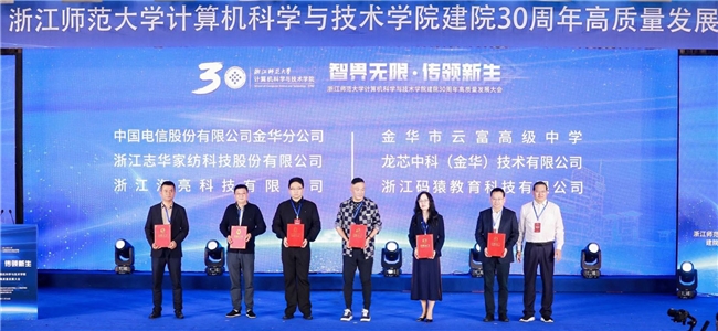 11月16日,浙江师范大学计算机科学与技术学院建院30周年高质量发展大会在浙江金华隆重举行。海亮教育科技服务集团副总裁彭蕾,海亮科技集团总裁张岩、人工智能研究院副院长汪涛受邀出席,并深度参与主旨报告、圆桌论坛等环节。