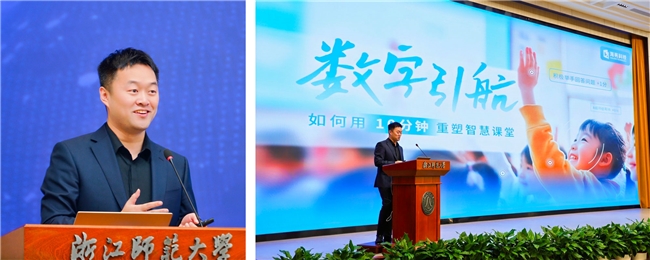 他以课堂场景为切入口,带领与会嘉宾沉浸式体验了数字产品激活课堂、激发学生内驱力的“魔法10分钟”。数字产品深度助力早读、分组、互动、点评、作业等关键环节,实现“小切口”撬动“大变革”的效果,赢得全场参会嘉宾的关注与点赞。他表示,海亮科技一直秉持“生于校园、长于校园”的理念,以“成为数字校园服务新生态的引领者”为美好愿景,致力于研发简单好用的数字化产品,为教师减负增效,帮助学生阳光自驱、全面发展。