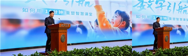 当日下午,在人工智能教育发展论坛上,海亮科技集团总裁张岩带来《数字引航:如何用10分钟重塑智慧课堂》主题报告。