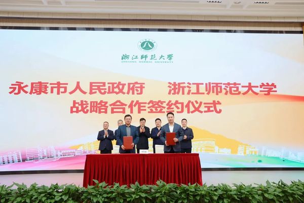 胡勇春代表永康市委、市政府对浙师大长期以来大力支持永康经济社会发展表示诚挚的感谢。他表示,浙师大办学历史悠久、学科实力雄厚,多年来为永康培养输送了大量优秀人才,为永康创新创业提供了强大智力支持。当前,永康正深入学习贯彻党的二十届三中全会精神,聚焦省委“一个首要任务、三个主攻方向、两个根本”要求,聚力攻坚“港”“廊”“链”主战场,加快推动从“中国五金之都”向“世界五金之都”跨越,我们比以往任何时候都更加需要人才、渴望人才。此次合作签约,是一次温暖人心的老友会面、一次恰逢其时的交流碰撞,也是践行教育科技人才体制机制一体改革的务实之举,更是推动双方高层次、宽领域、多角度融合发展的重要举措。永康期待以此次合作签约为新契机新起点,校地携手、互促共进、优势互补,在培育和发展新质生产力上携手并进,在教育、科技、人才一体化上互通有无,在推动高水平对外开放上一路同行,以一场相互成就的“双向奔赴”,为服务国家战略和地方发展提供硬核支撑。
