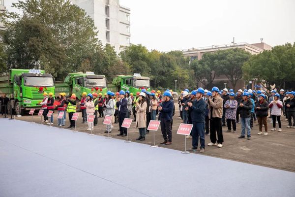 随着朱毅峰宣布:“浙江师范大学学生公寓项目开工”,仪式现场掌声雷动、卡车齐鸣。热烈的氛围中,出席奠基仪式的领导和嘉宾们共同为浙江师范大学学生公寓项目培土奠基。