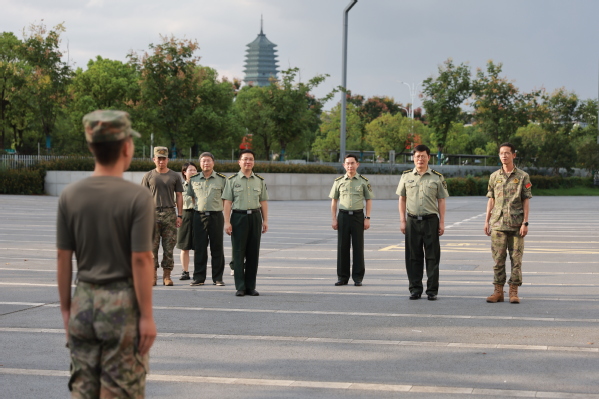 9月25日下午,蒋云良检查军训师三旅各营训练情况,亲切慰问杭州校区承训教官、受训新生,详细了解军训进度、训练内容以及杭州校区一站式学生社区、后勤保障等工作。对军训工作的有序组织和同学们刻苦训练的精神面貌表示充分肯定。蒋云良在军训现场勉励同学们要珍惜军训机会,在刻苦训练中锤炼意志、增强体魄,培养团结协作的优良作风,深刻领会“有理想、敢担当、能吃苦、肯奋斗”的精神内涵,希望同学们将军训中形成的意志品质延续到今后学习生活中,立报国强国大志向,做挺膺担当奋斗者。