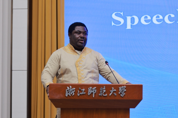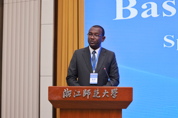 非洲数学联盟主席Basile Guy Richard Bossoto讲话。浙师大融媒体中心 章克锐 摄