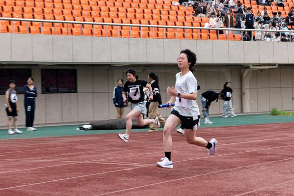 赛前,各院选手蓄势待发,眼中闪烁着对胜利的坚定渴望。发令枪响,选手如离弦之箭般冲出起跑线。化材学院第一棒林子淇迅速起跑,为比赛奠定优势;第二棒倪羽萱步伐稳健,持续领先;第三棒杨墨涵流畅接棒后进一步拉开差距;第四棒鲍仟仟全力冲刺,最终率先撞线,勇夺桂冠。