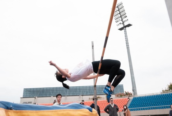 当秋日的凉风吹过跳高的场地,跳高防护垫旁早已站好了一排运动员,有焦虑也有兴奋。蔡唯站在人群中,深蓝色的钉鞋牢牢将她钉在地上,目光中满是期待 。