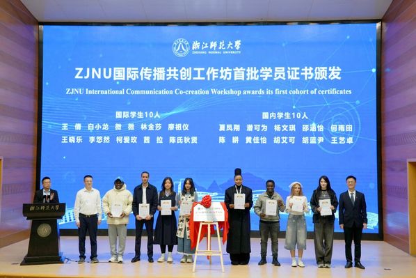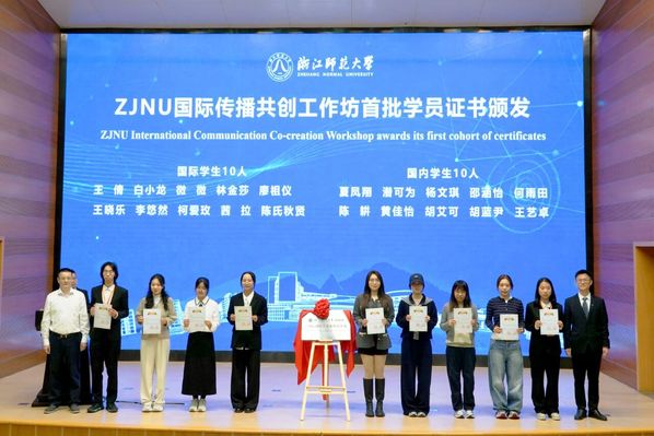 ZJNU国际传播共创工作坊揭牌仪式并为首批学员颁发证书。浙师大融媒体中心 李俊驰 摄