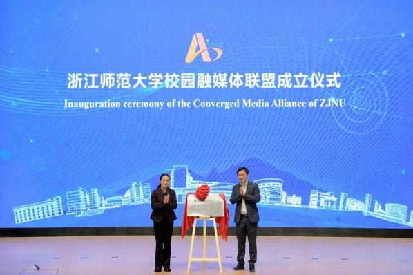 吕迎春、非洲研究院相关负责人为“浙江师范大学校园融媒体联盟”揭牌。