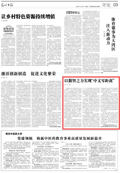近日,浙江师范大学中国“一带一路”语言生态研究中心执行主任王辉教授在光明日报发表题为《以数智之力实现“中文零距离”》的文章。