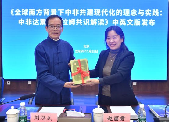 会议还发布了《全球南方背景下中非共建现代化的理念与实践——中非达累斯萨拉姆共识解读》,刘鸿武向赵丽君赠书。
