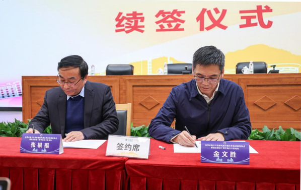 金文胜与张根福续签共建“地方立法研究院”合作协议。