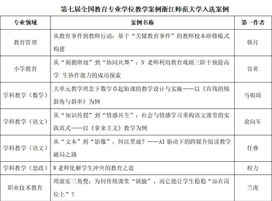 浙师大7篇教学案例入选第七届全国教育专业学位教学案例。图片来源 研究生院