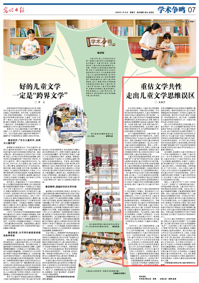 1月16日,人文学院吴翔宇教授在《光明日报》(2026年01月16日07版)发表题为《重估文学共性 走出儿童文学思维误区》的文章。