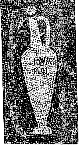 “乌姆布里基乌斯·斯考卢斯之家”马赛克地板上的鱼露瓶 资料图片