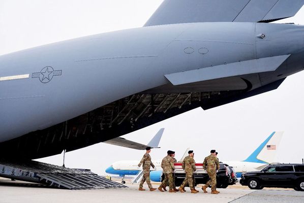 3月7日,6名阵亡美军士兵遗体运抵美国特拉华州多佛空军基地。3月1日,伊朗无人机袭击了科威特境内一处美军指挥中心,6名美国陆军士兵死亡。