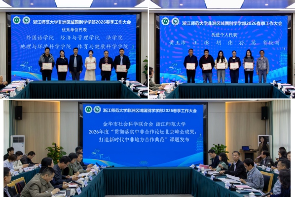 现场举行了区域国别学学部优秀单位和优秀个人表彰仪式,发布了金华市社会科学联合会、浙江师范大学发布2026年度“贯彻落实中非合作论坛北京峰会成果,打造新时代中非地方合作典范”课题,并启动了教育部非洲联合研究院自设重大课题《中非人文交流发展报告 1956-2026》。