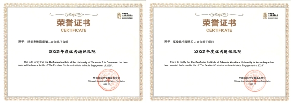 近日,中国国际中文教育基金会公布“2025年度优秀通讯孔院”评选结果,全球共有42所孔子学院获此荣誉。浙江师范大学合作共建的喀麦隆雅温得第二大学孔子学院和莫桑比克蒙德拉内大学孔子学院双入选。