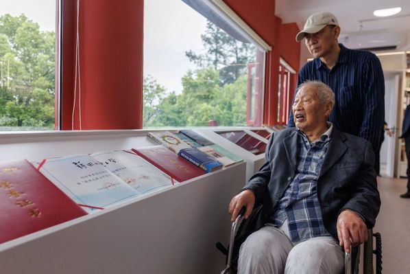 著名儿童文学理论家、浙师大原校长蒋风教授参观浙江师范大学儿童文学馆。浙师大融媒体中心 李俊驰 摄