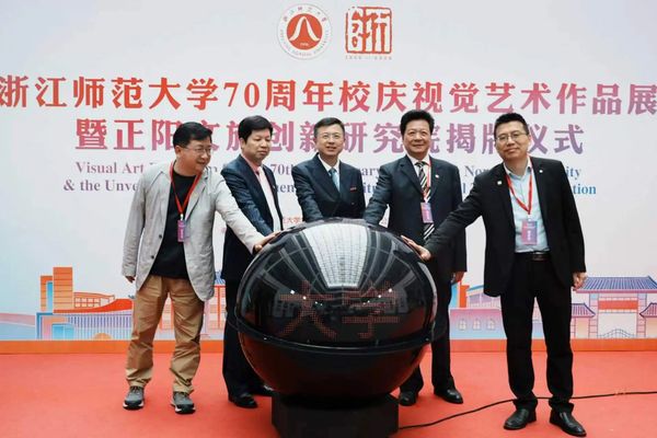 4月17日,浙江师范大学70周年校庆视觉艺术作品展暨正阳文旅创新研究院揭牌仪式在18幢教学楼一楼中厅举行。金华市人民政府原常务副市长、浙江师范大学校友金中梁,浙江师范大学校长邱利民,党委委员、宣传部部长葛永海,浙江正阳博瑞文旅产业发展有限公司董事长、浙江师范大学正阳文旅创新研究院院长张中明出席仪式。