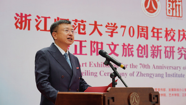 葛永海表示,视觉艺术既是文化传承的载体,也是时代精神的写照。本次视觉艺术作品展,不仅是学校70周年校庆活动的重要组成部分,更是艺术教育成果与师生校友艺术情怀的一次集中绽放。同时,正阳文旅创新研究院的揭牌,标志着校企合作、产教融合的深化与升级,期待其为浙江乃至长三角地区的文旅产业发展注入“浙师动能”。希望各位艺术家和校友继续关心支持浙江师范大学,携手深耕艺术创作、推动文化传承;也希望校企双方进一步深化合作,在文旅融合发展的道路上书写新篇章。