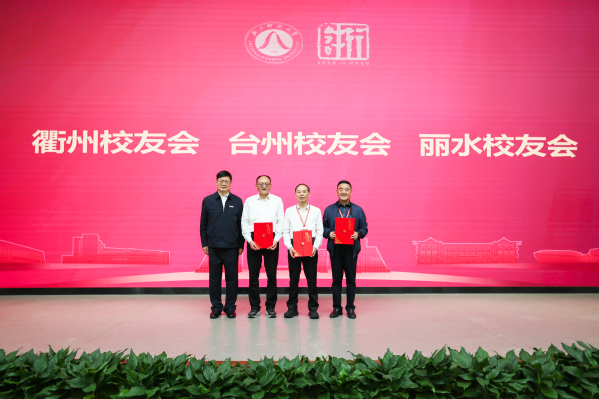 浙师大党委书记蒋云良为校友组织代表及捐赠校友代表颁发证书。浙师大融媒体中心 章克锐 摄