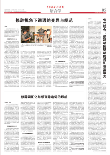 其三,是浙江师范大学傅惠钧教授和他的博士生合作撰写,题为《修辞词汇化与感官隐喻词的形成》,文章应用傅惠钧教授修辞词汇化理论,探讨感官隐喻如何从修辞现象发展为词汇现象的过程以及内在规律。
