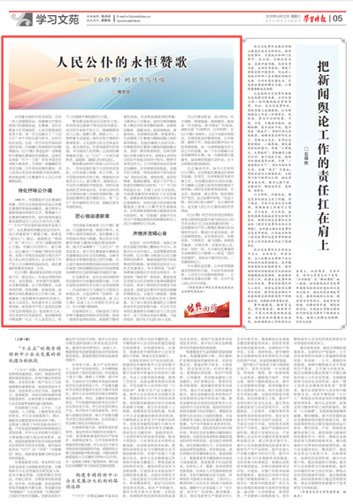 近日,艺术学院郭克俭教授在《学习时报》上发表题为《人民公仆的永恒赞歌——〈公仆赞〉的创作与传唱》的文章。