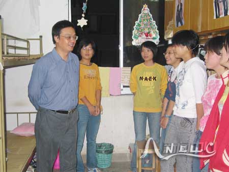 在7幢一楼法政经济学院的女生寝室,刚巧碰到该院的有关老师在指导新生们整理内务,李鲁嘱咐有关老师要切实地为新生做好入学时的适应工作,有任何问题及时反映。