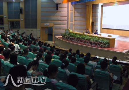 校学生会副主席楼辰宣读了浙江大学、浙江工业大学、浙江师范大学、宁波大学学生会致全省大学生的倡议书——“杜绝考试作弊 做诚实守信的大学生”。