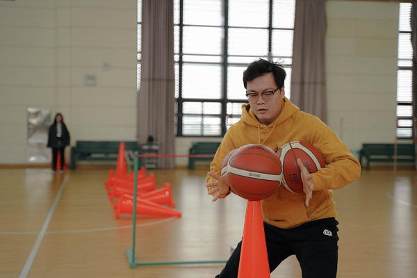 “幸运沙盘”赛场上,选手们个个摩拳擦掌、跃跃欲试。不少手劲大的选手,猛地一掷便越了线,而手劲稍小的选手,则稍一用力就偏了线。同样是考验命中率,“飞盘点球”比“幸运沙盘”又增加了一丝难度,不仅要根据距离估计发力程度,还要考虑空气阻力和惯性方向。当然也有不少选手“技不如人”,飞盘或被甩向高空,或朝着别人的目标门框砸去,引发全场欢声笑语。“一级方程式障碍跑”项目考验的则是速度与体能:前滚翻、绕杆跑、跨栏杆,怀抱三个篮球的同时还要全力冲刺。参赛的中老年教职工可丝毫不逊于年轻姑娘小伙,他们个个身轻如燕,健步如飞,诠释了什么是是激情与速度!