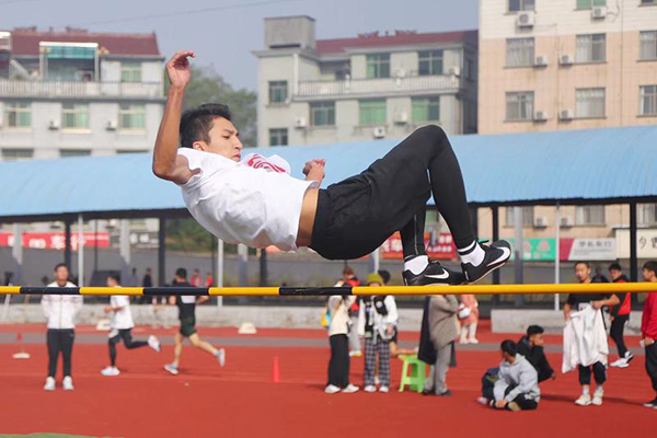 10月23日上午,男子甲组跳高决赛角逐激烈。来自地理环境与科学学院的新疆小伙——阿卜杜塞米•木塔力以1.65米的成绩,夺得此次比赛的冠军。