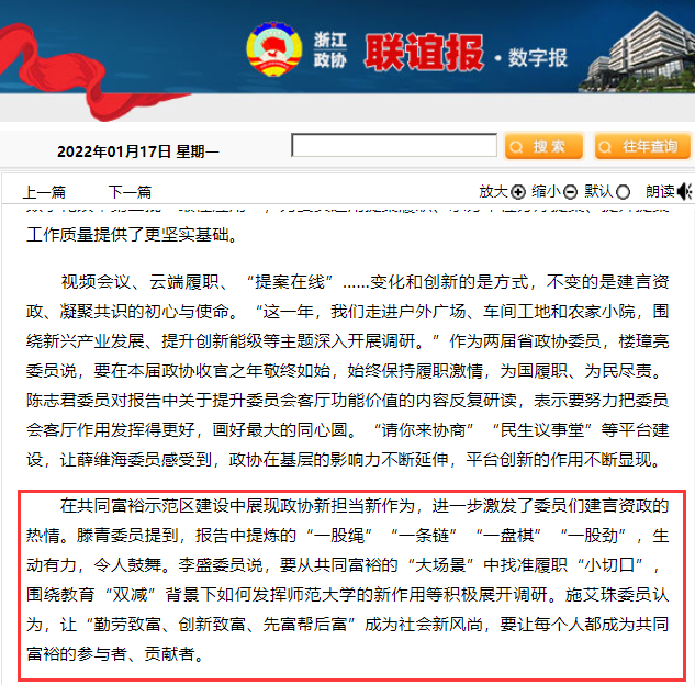 《浙江日报》《联谊报》《钱江晚报》、浙江新闻客户端等媒体报道了浙师大省政协委员履职情况。