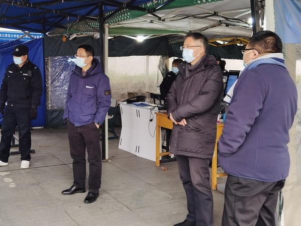虎年春节期间,浙江师范大学党委书记蒋国俊,副校长钟依均,省监察专员、校党委委员、纪委书记傅关福深入校园一线,检查学校寒假疫情防控、值班值守、校园安防和后勤保障配套等工作,向坚守岗位的值班工作人员的辛勤付出表示感谢,并向他们致以新春祝福。
