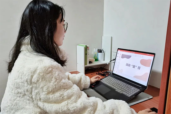 《经典咏流传》《国家宝藏》《舞千年》……人文学院骆铭丹的诗词网课上,充分运用云端资源,带领学生感悟诗词的韵律美、文化美。“我希望学生能在诗词学习中感悟中国传统文化的魅力,并能运用所学欣赏其他艺术作品。”在学习李白诗词时,骆铭丹以舞剧《李白》为载体,与学生探讨李白的一生。在云端资源的辅助下,学生学到的不仅仅是诗词,更是欣赏艺术、发散思维、学以致用的能力。