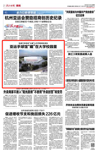 2月24日,《浙江日报》要闻版报道了浙师大手球馆的整体建设情况,并详细介绍了手球馆的造型寓意、观赛体验、赛后用途等。