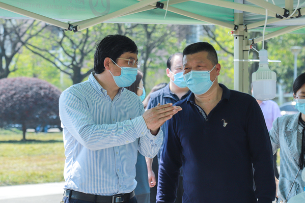 浙师大党委副书记朱坚在现场指导核酸检测工作。浙师大融媒体中心 王洢菲 摄