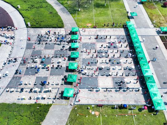 上午11:00开始,核酸检测在崇师广场有序进行。140名师生志愿者,30秒内就全部招募完毕。校医院除值班人员外,其他医护人员穿上防护服全部就位,为校园防疫安全保驾护航。他们火速集结,分布在各个岗位上,为校园防疫安全保驾护航。