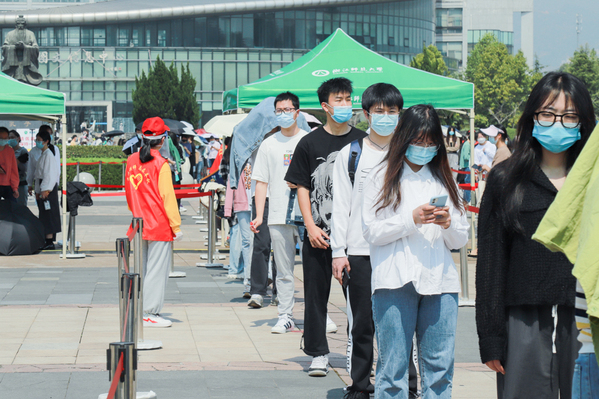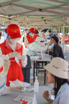 检测台边,志愿者余同学正在负责帮助医护人员准备核酸检测需要的棉签工具。工作两个多小时,她最大的感受就是“有序”。尽管天气炎热,前来检测的师生都尽最大的努力配合学校工作,所有人都自觉排队检测。“这是对我们自己的健康负责,也是对全校同学的健康负责。”
