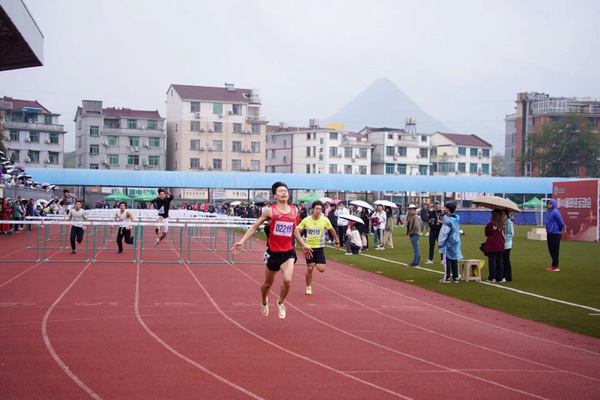 11月4日上午,男子乙组110米栏决赛在濛濛细雨中结束。体育与健康科学学院体教202班李想以14秒53的成绩第三次夺冠,体教213班的吴仁杰和体教222班的张茁成分别以15秒32和15秒41的成绩摘得亚军与季军。