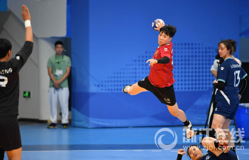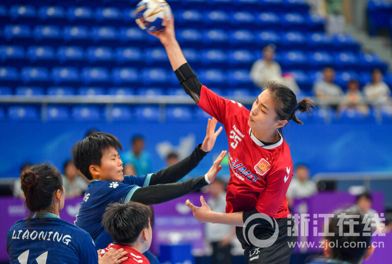 6月28日,江苏女子手球队在首轮小组赛中对战辽宁女子手球队。