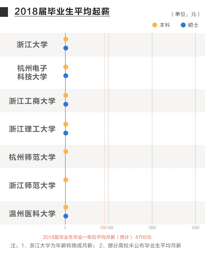 省教育厅发布的《浙江省2018届普通高校毕业生就业质量年度报告》显示,2017届毕业生毕业一年后的平均月收入为4624元,2018届预计为4700元左右。从已经公布月薪的这几所学校来看,浙里的毕业生还是很“值钱”的。