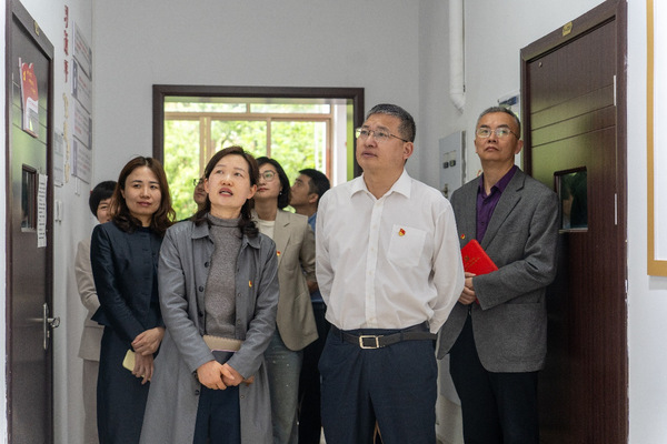会前,傅关福一行实地考察了化学与材料科学学院全国样板党支部、全国高校“双带头人”教师党支部书记工作室。在工作室负责人、无机化学教师党支部书记童国秀教授的带领下,傅关福一行深入了解了无机化学教师党支部发挥党建引领作用,赋能一流学科建设、团队建设推进、项目成果孵化、育人质量提升、社会服务推广等方面的经验和做法。
