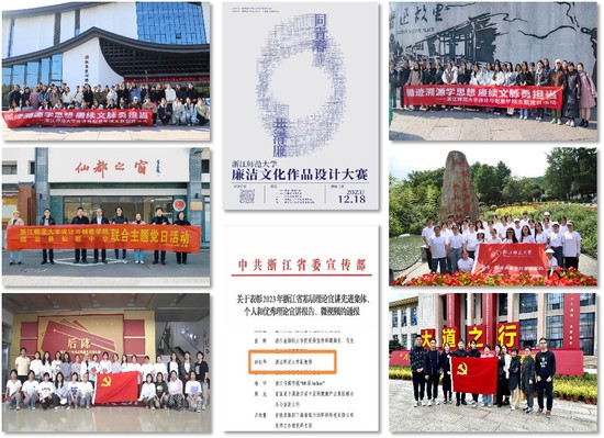 深化文化建设,实施“红色文化育人行动”, 开展“追寻红色足迹,赓续红色血脉”活动,形成红色系列成果近260余篇(件),深化课程思政。深化“党建带团建、团建促党建”工作模式,以党员先锋服务岗、“无界”党员理论宣讲团为依托建立理论学习和服务实践为一体的党员教育培养机制;高质量完成学校师德师风问题整治工作任务,定期开展理论学习、警示教育,强化榜样引领,1人获校“郑晓沧”奖,4人获校“砺行”奖教金,1人获校“成泰共好”奖教金,1人获“我最喜爱的研究生导师”,1人获浙江省高校研究生党员标兵,获校主题党日设计“十佳案例”,设计作品、调研报告、主题微课等获校级以上奖励达20余人次。加强阵地建管,重点加强对课堂、教材、讲座、论坛、学术成果、新媒体等的建管,全新改版学院官方网站。